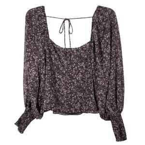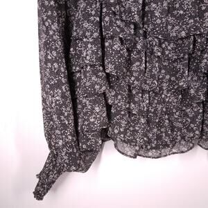 Astr the Label Fairfield Smocked Square Neck Floral Ruffle Blouse Black Large