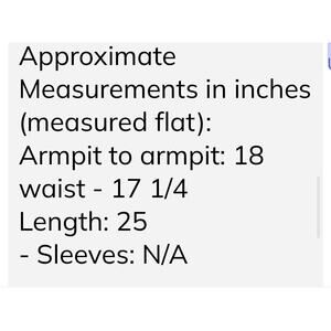 Approximate Measurements in inches (measured flat):
