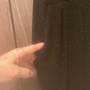 Pleated waist details add subtle elegance to a thin strapped jumpsuit. - Surplice neck with button closure - Sleeveless - Adjustable spaghetti straps - 2 front slash pockets - Pleated front - Allover sparkle detail - Imported Fiber Content Self: 45% nylon, 26% acetate, 24% metallic, 5% spandex Contrast: 95% rayon, 5% spandex Care Dry clean only