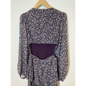 Astr the Label Tired Maxi Dress Side Slit Open Back Purple Green Gold Floral M