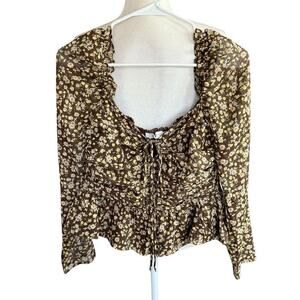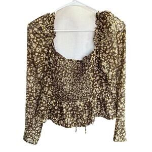 Astr the Label Women's Toni Top Brown Floral M Boho Ruching Hippie Granola Girl