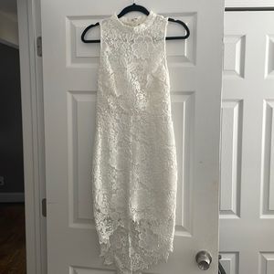 Sleeveless high low hemline, worn once and dry cleaned (a little staining on inside neckline did not come out from makeup but not visible when worn)