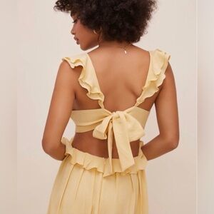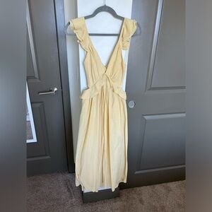 Astr the Label ruffle cut-out midi dress. Size XS. Very good condition. Light yellow color, shoulder ruffles, tie back, lined, midi dress. Zipper in the back/skirt. TTS. Perfect for a summer wedding 🌞