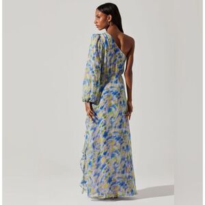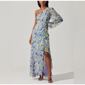 Astr the Label Women's Sandersonia Floral One Shoulder Dress Blue size S NWT