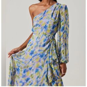 Astr the Label Women's Sandersonia Floral One Shoulder Dress Blue & Yellow size S NWT