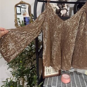 This stunning Astr off the shoulder top a radiant brown color and long sleeves with a tie design, making it a standout piece for any special occasion. Its flowing fit and shimmering texture add a touch of elegance and glamour, ensuring you capture attention wherever you go.
