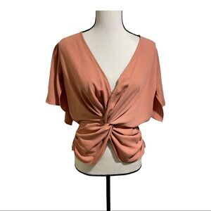 Astr the label short sleeve front twist top blouse size medium elastic waist