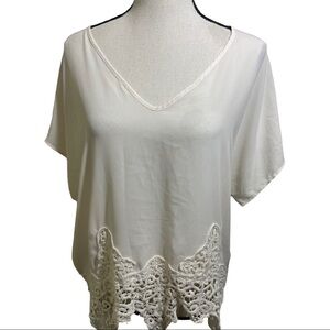 Astr womens blouse crochet bottom short sleeve cream color size medium