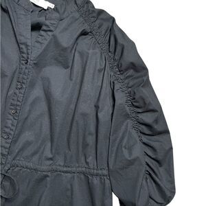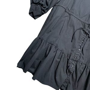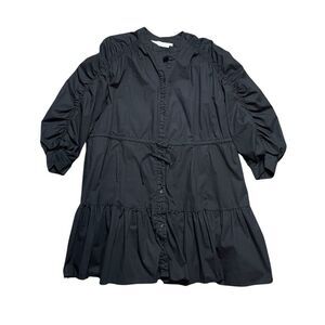 Only A crisp drawstring bodice paired with a billowing ruffled skirt will have you feeling fresh and clean during the summer heat. Airy sleeves and a button-up front make for great details to complement a colorful kitten heel or even a casual sneaker. Minimal and elevated. This mini dress features a buttoned front that descends to a cinched waist with tying accent. Long ruched sleeves and flared mini skirt add statement details. Ruffled hem.