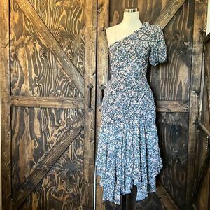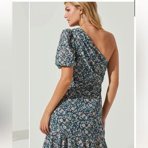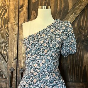 Astr SANTORINI FLORAL ONE SHOULDER MIDI DRESS Sz-