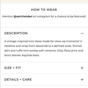 A vintage-inspired mini dress made for close-up moments! V-neckline and wrap front descends to a defined waist. Shirred skirt and ruffle trim evokes soft romance. Ditzy floral print and short sleeves. Keyhole back.