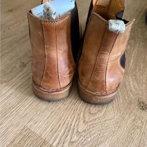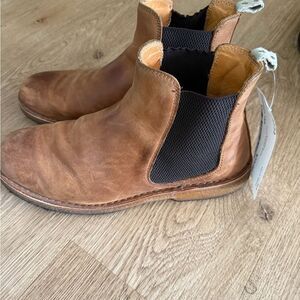 Stylish tan leather Chelsea boots. Sleek design with a comfortable fit.