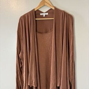 Astrologie Womens Layered Top Brown Blouse Cardigan Set Mature Office Sz XXL