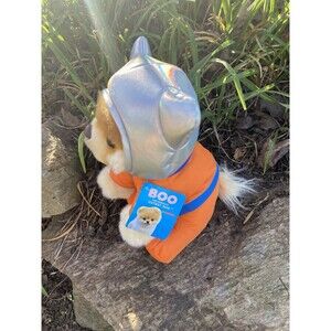 The Astronaut Boo Plush Stuffed Animal by GUND is a 9-inch toy featuring the character Boo the Dog in an astronaut outfit. This small-sized plush toy is suitable for children aged 3-16 years and is perfect for fans of the Boo the Dog character. Made in China by GUND, this adorable stuffed animal is a great addition to any child's toy collection, combining imaginative play with the cute and lovable character of Boo.