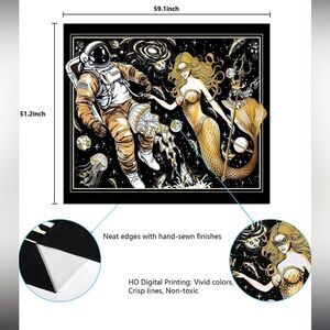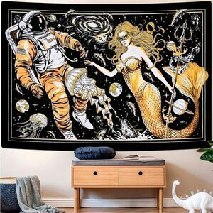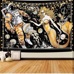 Astronaut Tapestry Mermaid Adults Tapestry Black Aestheic Tapestries Sta…