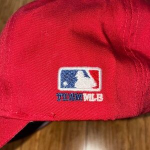 Stylish red baseball cap featuring a star logo. Perfect for casual wear.