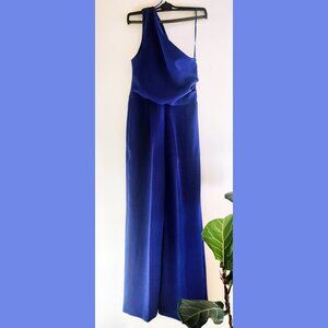 One shoulder jumpsuit in electric blue purchased from Mango. New with tags, never worn (I went up a size and never ended up returning this one) It's a cool piece that really elongates the body frame (in my opinion).