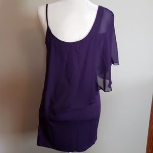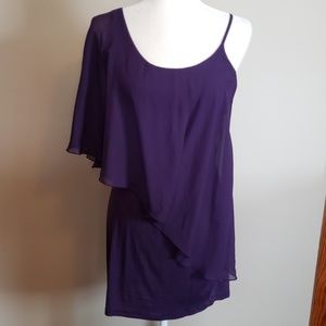 ⭐Purple tunic top with asymmetric sheer overlay. Long tunic length with jersey like fabric tank.