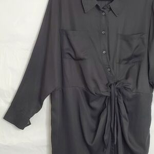 NWT Laurie Felt Tie Front Black Shirt Dress Size 20W. Soft, versatile and comfy with a button front and tie waist. A cinched hem creates an asymmetric look.