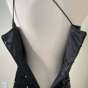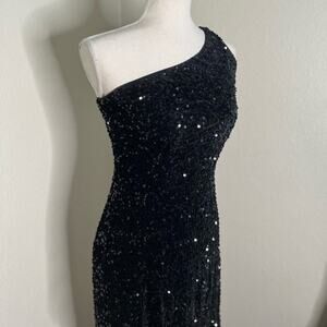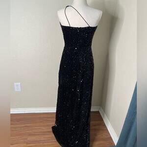 Asymmetrical Black Sequined Gown with Front Slit Medium. Unknown manufacturer - no label.