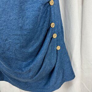 Asymmetrical Blue Short Sleeve Womens Top Side Button Accents