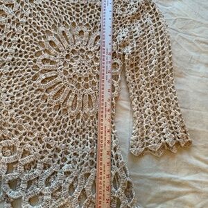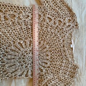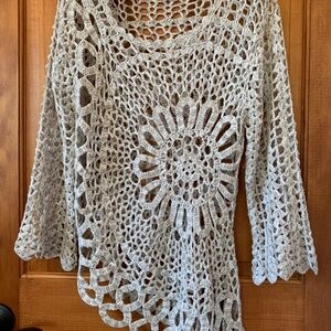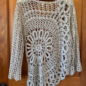 Crocheted beige sweater top. Stretchy. Wonderful for layering.