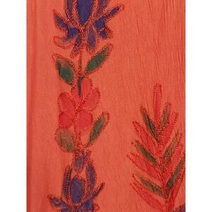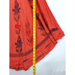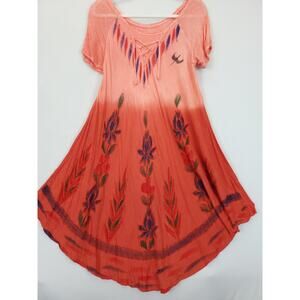 Asymmetrical Dress Boho Hippie Watercolor Ombre Peach Rust Floral Embroidered M