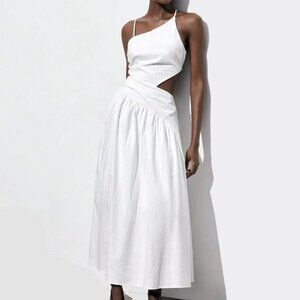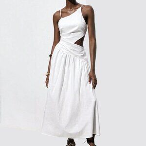 Asymmetrical Dress Cut Out Ruched Maxi Lace Up Back
