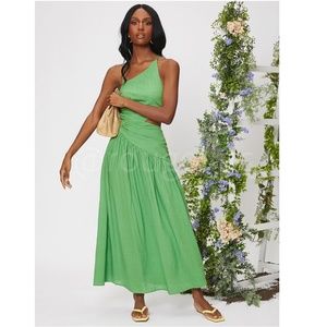 Asymmetrical Green Dress Cut Out Ruched Maxi Lace Up Back