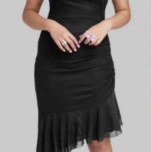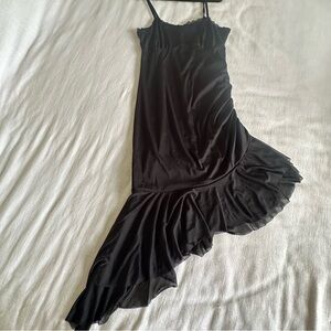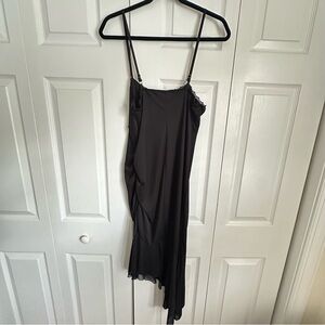 Asymmetrical Hem Mesh Lace Detail Ruched Slip Dress Womens M Whimsigoth Milkmaid