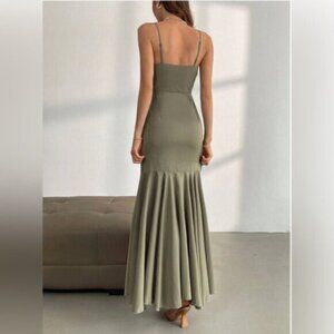 Asymmetrical Hem Ruffle Trim Spaghetti Strap Dress Green