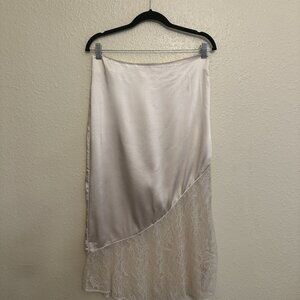 Can be worn as a skirt or as a slip as a layering piece. Fun to dress up or down. Very shiny material and comfortable to wear. Skirt is blush/nude and the lace trim is white.