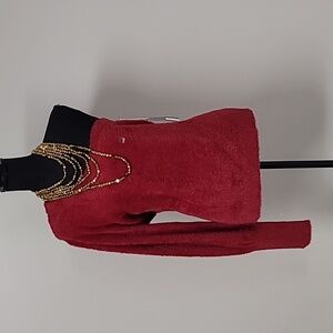 Add a chic twist to your cold-weather wardrobe with this Worthington women's fuzzy pullover sweater featuring a bold red hue and a flattering asymmetrical neckline with an open-shoulder design. Made from soft knit, it has a form-fitting silhouette and a single long sleeve. Pair yours with tailored pants or high-waisted jeans.