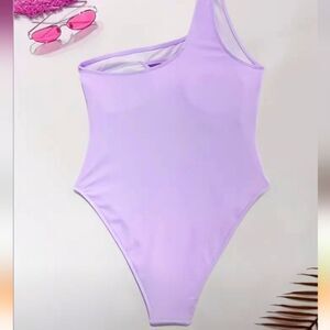 Asymmetrical One Shoulder Strap Cut Out Front Tummy Control High Cut One Piece