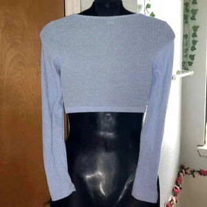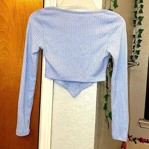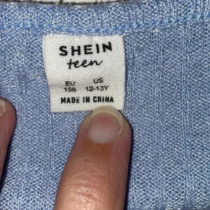 Size Teen 12-13 Y, Long-sleeved, baby blue color, unique, creative, & original style top ๐๐๐ฏ Sorry ๐, the paint on the mannequin is/was coming off. I have sprayed painted the mannequin awhile after this pic was taken, but I am going to have to repaint it again. Since the shirt is kinda sheer, it was appearing thru the shirt. There arenโt any stains on the shirt. Updated/added more pics.