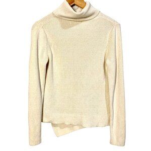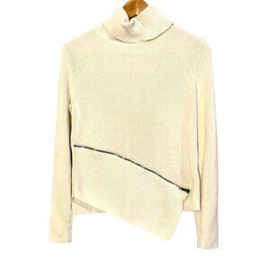 Asymmetrical Ribbed Turtleneck Sweater XS Side Zip Cream Knit Texture Neutral