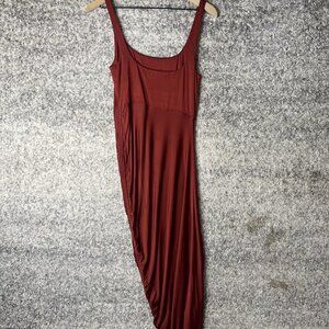 Asymmetrical Ruched Dress Womens Medium Rust Red Sleeveless Scoop Neck Bodycon