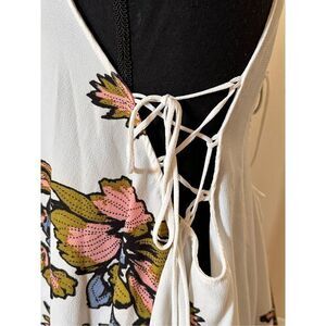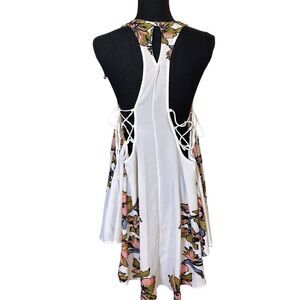 Asymmetrical Scoop Neck Floral Print Lace-Up Dress