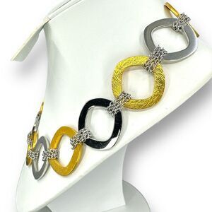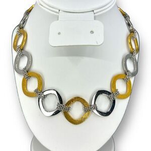Asymmetrical Statement Necklace Multi-Tone Stainless Steel Chain Link 18-21 in
