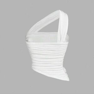 Asymmetrical White Elegant Vest Decorated With Three-Dimensional Flowers On Top