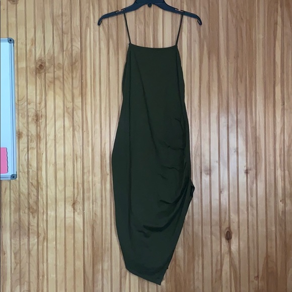 Assymetrical olive green, bodycon dress. It actually fits way better than the picture shows. Good condition. Smoke/ pet free home. Make me an offer 😁