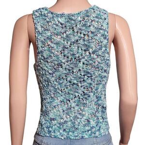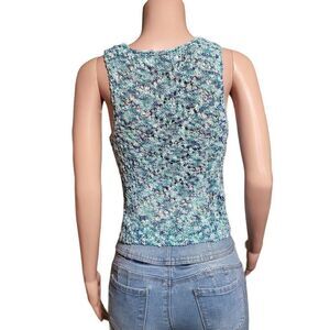 Asymmetrical crew neck water blue sleeveless crochet tank top M