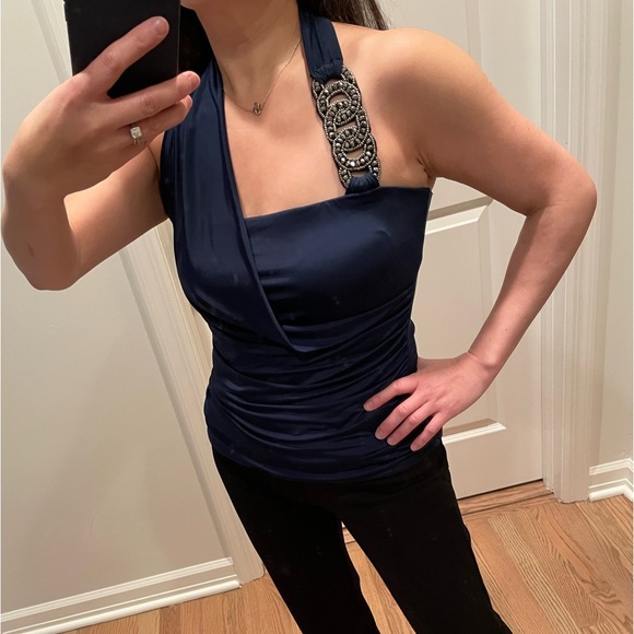 Gorgeous. Never wore. I shortened the beaded area at one point for better fit see the last pic. Fits S - small M.