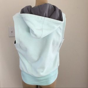 Bought this at Eastern Mountain Sports in New Hampshire. Worn only a handful of times. In excellent condition. Has a hand pocket warmer in front. A beautiful light blue vest. With gray hoodie.