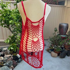 Asymmetrical netted beach cover up