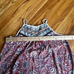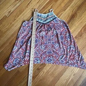 Asymmetrical tank top, size small. Red, white and blue tone in a paisley pattern. Super soft, in good used condition. No rips tears or stains.