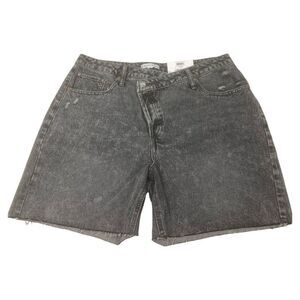 Ladies super cute black acidwash denim asymmetrical fly Bermuda Length Shorts by And Now This. New with tags. Excellent condition. Ladies size euro 31 or US size 10/11.