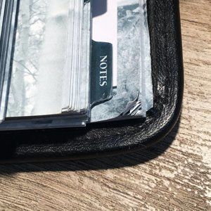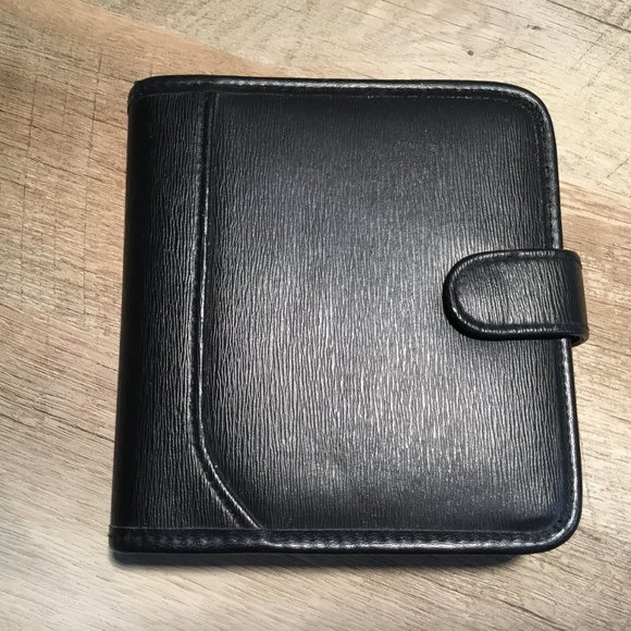 Vintage leather planner folio. Five refillable sections (calendar, address, special, personal, notes) Snap Closure, ring binded. (6" L x 5 1/2" W x1" D)