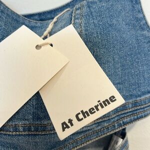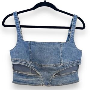 At Cherine Phoebe Hot Denim Cut Out Crop Top size small NWT