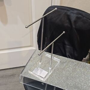 Elegant silver jewelry display stand. Perfect for showcasing necklaces and bracelets.